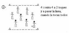 B- Mediocampo, marcas, juegos reducidos, pases cortos y largos, desbordes y centros, remates y anticipos.